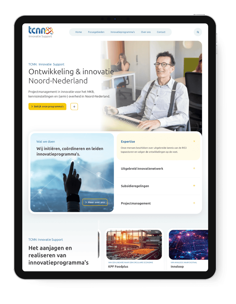 Dat TCNN voor Noorderinzicht koos, waarderen we enorm. Ze zijn een vooruitstrevende organisatie die oog heeft voor kwaliteit en toekomstbestendigheid. Samen bouwden we een website die technisch en visueel stevig staat, maar óók makkelijk kan meegroeien met hun organisatie. De samenwerking verliep vlot en in goed vertrouwen; korte lijnen, praktisch overleg en snel schakelen. Precies de manier van werken waar we blij van worden.